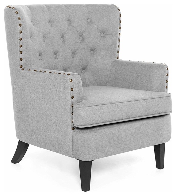Belleze Modern Wingback Tufted Nailhead Accent Chair Linen Tall