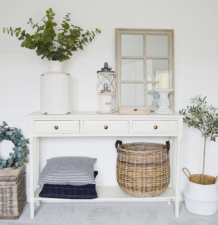 Cove Bay Small White Console Table With Drawer And Shelf For