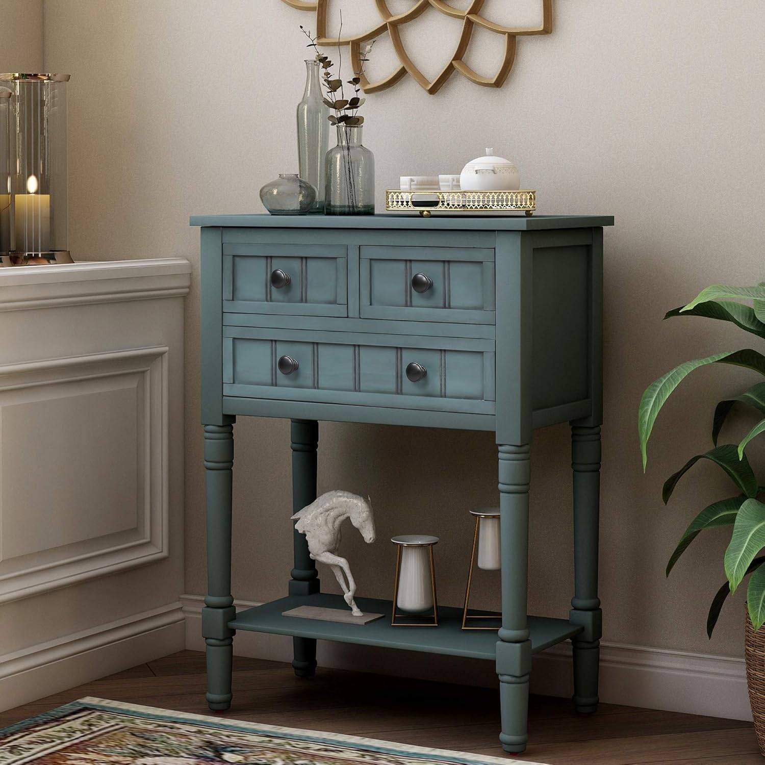 Trexm Narrow Console Table Slim Sofa Table With Three Storage