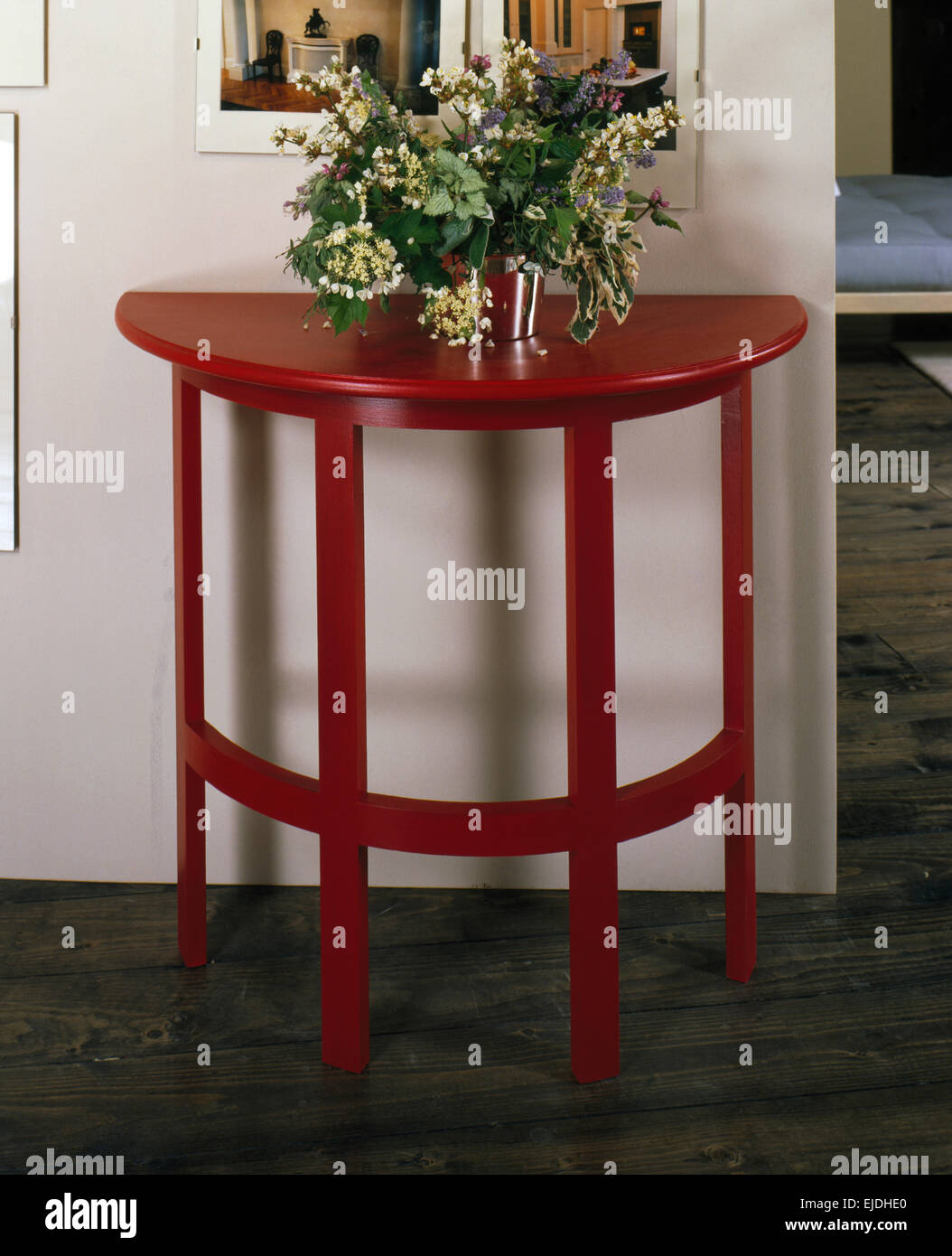 This Beautiful And Practical Very Shallow Red Console Table Is