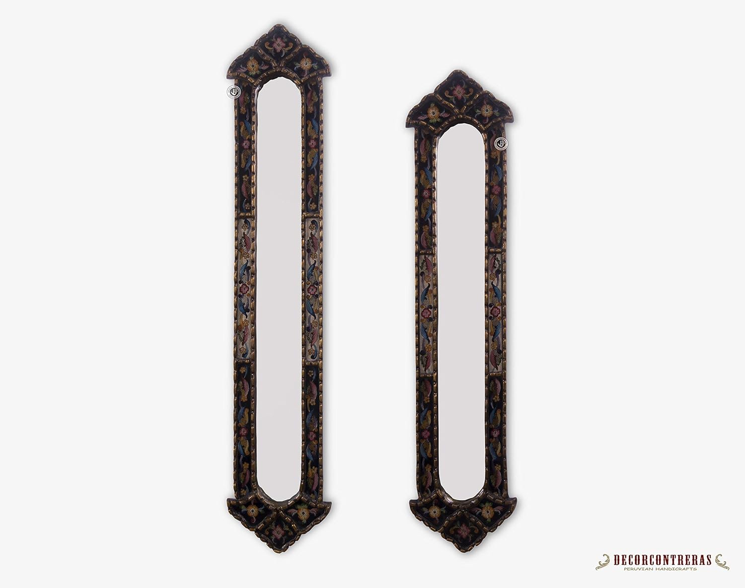 Amazon Com Long Narrow Mirror Wall Art 35 8 Tall 31 5 Tall Decorative Long Mirror From Peru Painting On Glass Silver Leaf Wood Framed Wall Accent Mirrors For Living Room Handmade