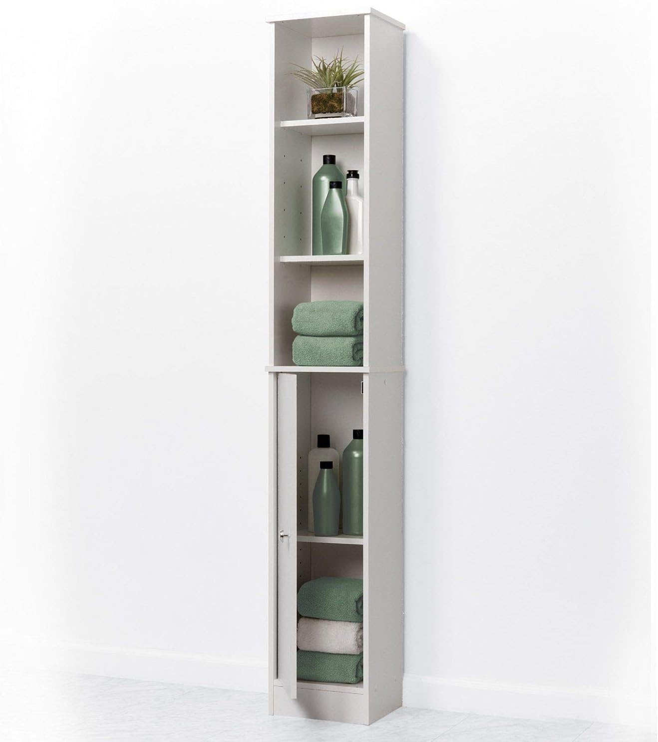 White Slim Display Cabinet Storage Space Narrow Linen Tower 5