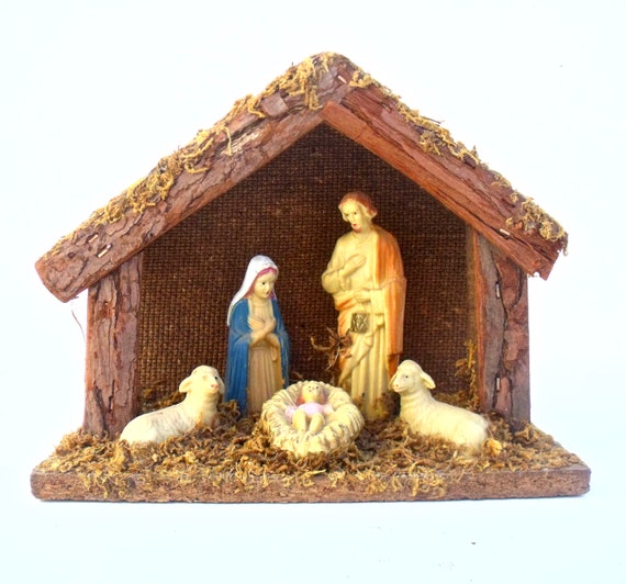 French Vintage Nativity Stable Scene Decor Religious Etsy