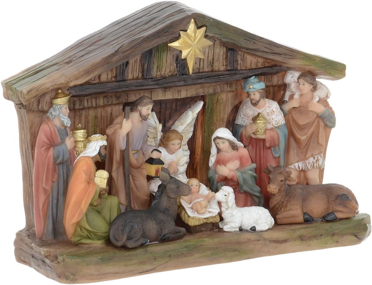 Toyland Traditional Christmas Nativity Scene Stable With 12