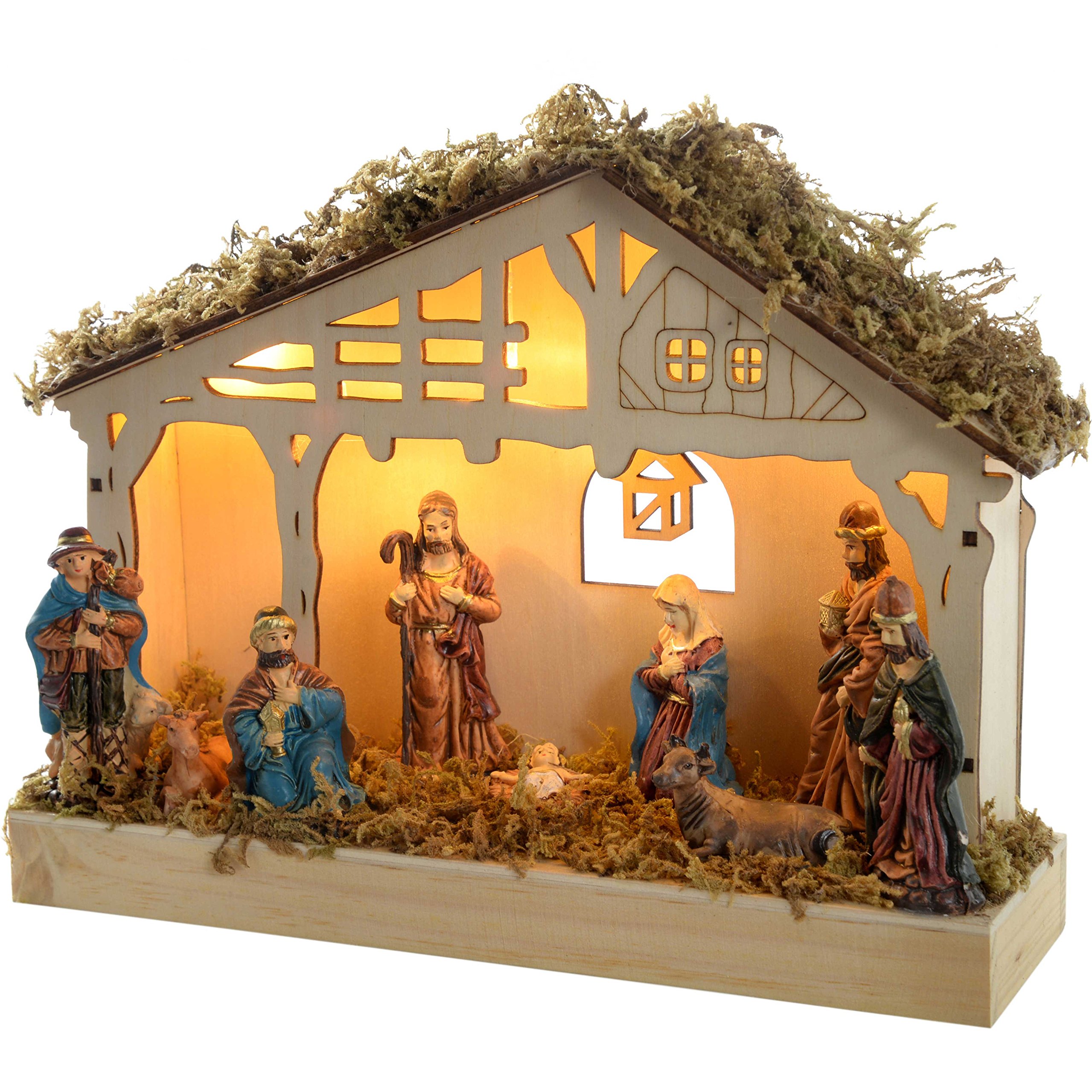 Werchristmas 26 Cm Pre Lit Christmas Wooden Nativity Scene