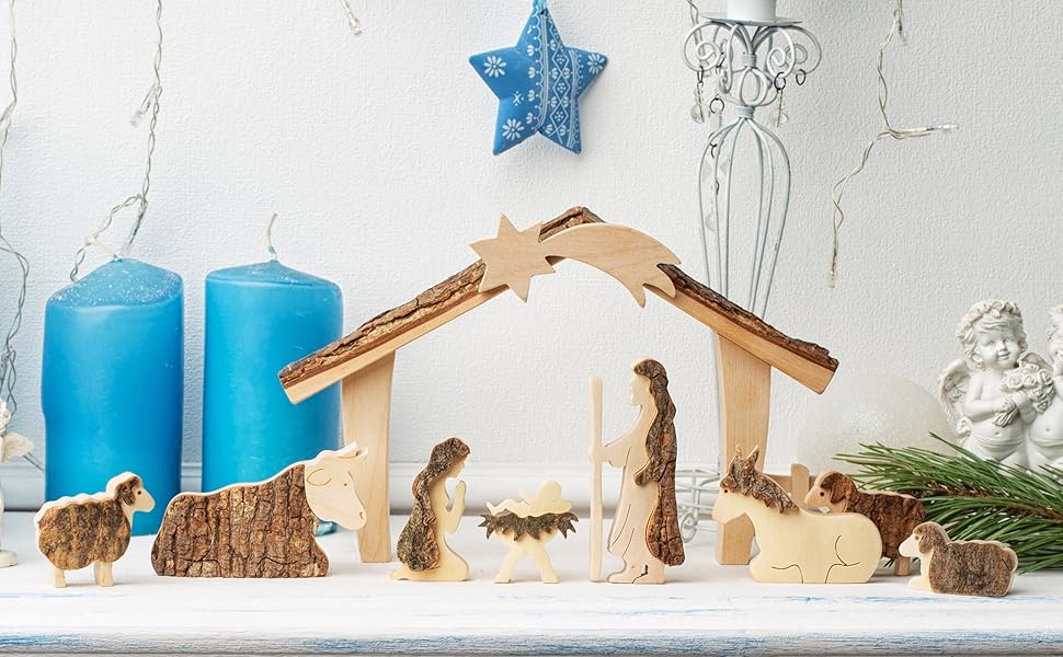 Classic Nativity Set 14pcs O Holy Night Wooden First Christmas