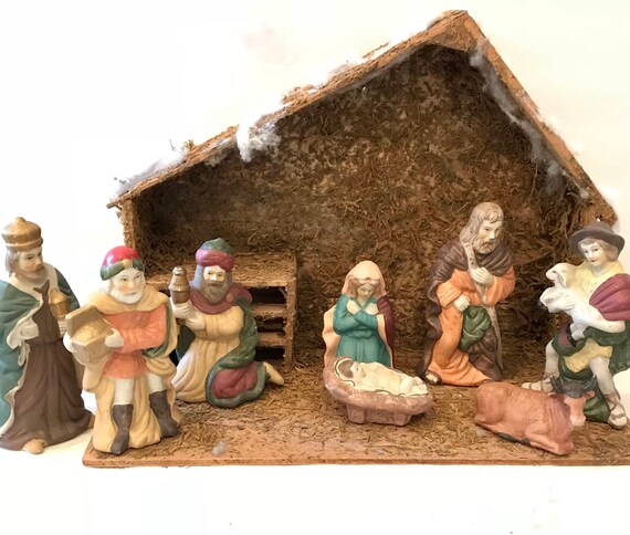 Beautiful vintage chalk ware christmas nativity scene set with 15 figures. 4450 shipping. Manger scenes come with several nativity figures and figurines including a baby jesus his mother mary and joseph. Vintage christmas nativity scene wooden stable manger creche italy 11x14 fixed.