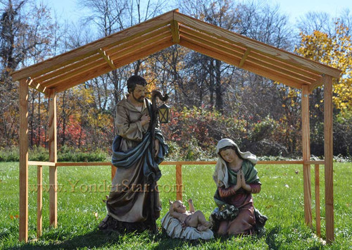 Large Outdoor Nativity Set With Wooden Stable Yonderstar