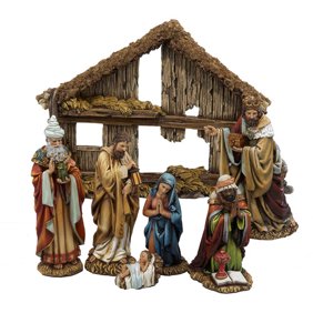 8 Piece Traditional Nativity Scene Figures And Stable Christmas