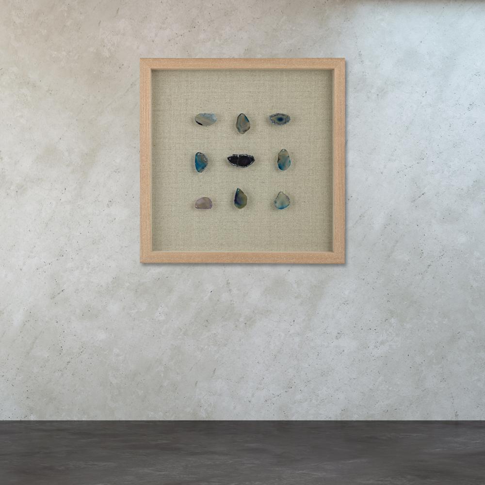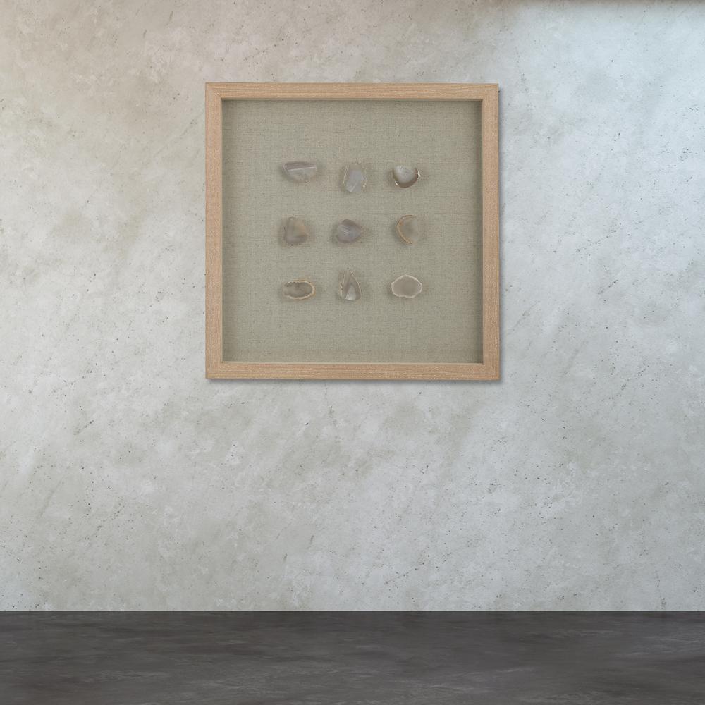 Wall Art Natural Agate Stone Shadow Box 10x10inch Decorative Linen
