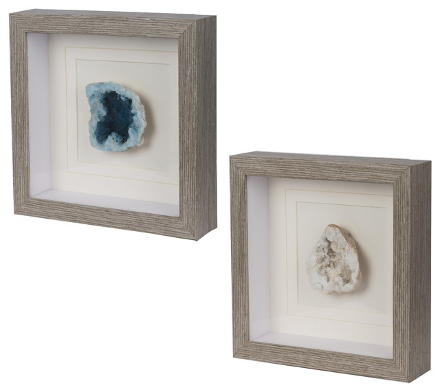 Modern Lodge Natural Geodes Stone Under Glass 22 Shadow Box Wall