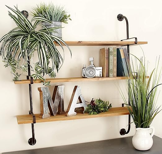 Amazon Com Deco 79 Rustic Metal 3 Tiered Wall Shelf 38 H X 38
