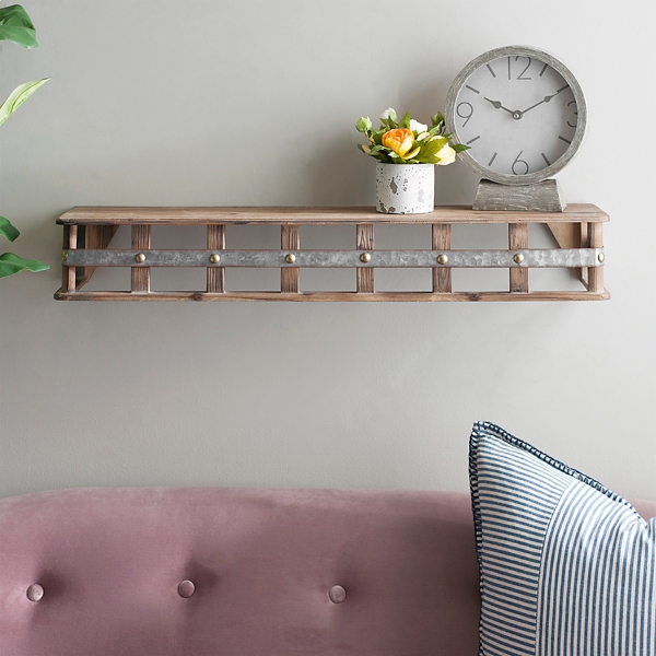 Natural Wood And Iron Wall Shelf Kirklands