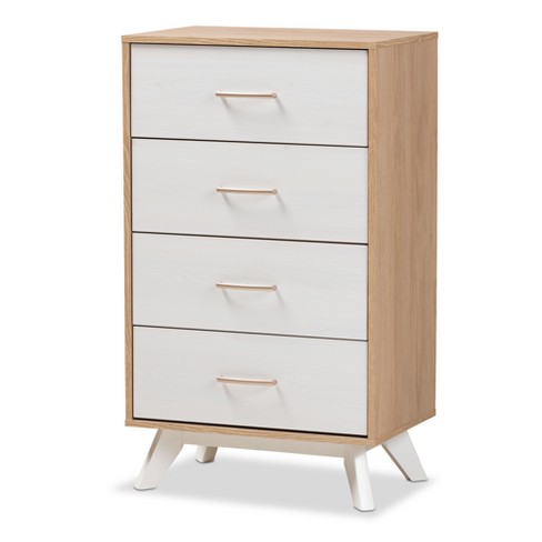 Helena Mid Century Modern Natural Oak And Whitewashed Finished Wood 4 Drawer Chest White Baxton Studio Target