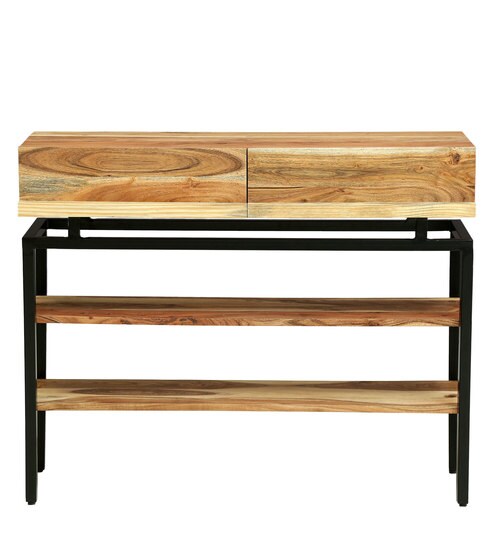 Buy Trestle Solid Wood Console Table In Natural Acacia Finish By