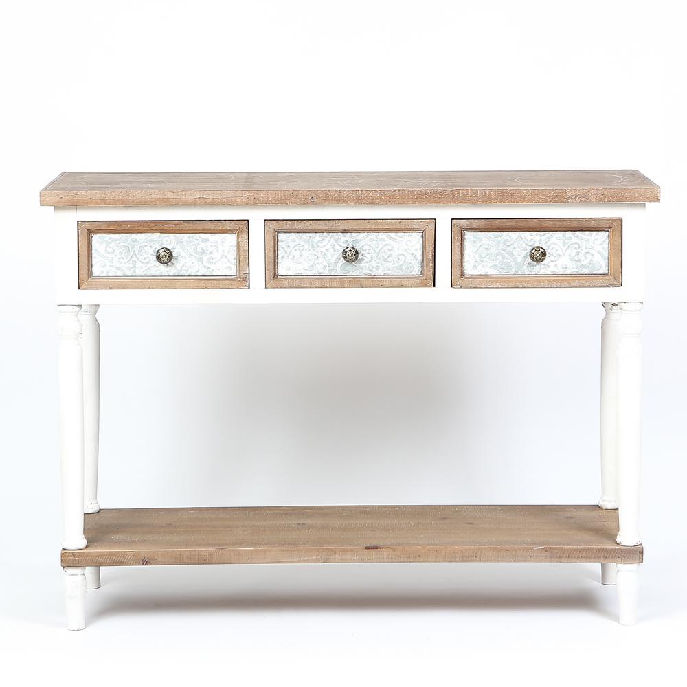 Off White Console Table Rustic Wood Finish Sofa Display Storage