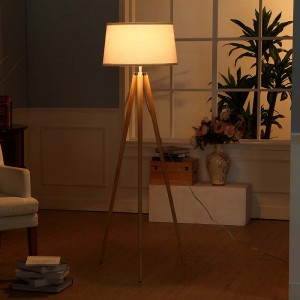 China Ip20 Wooden Tripod Floor Lamp For Bedroom Hotel Living Room