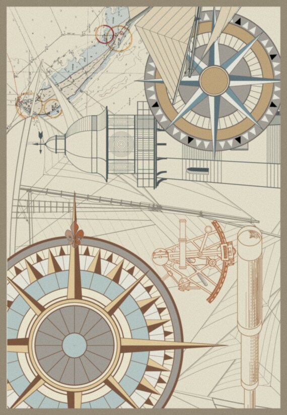Navigo Nautical Compass Rose Lighthouse Contemporary Etsy
