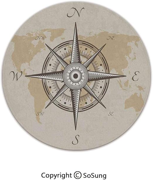 Beddingoutlet Compass Round Carpet Nautical Map Floor Mat World