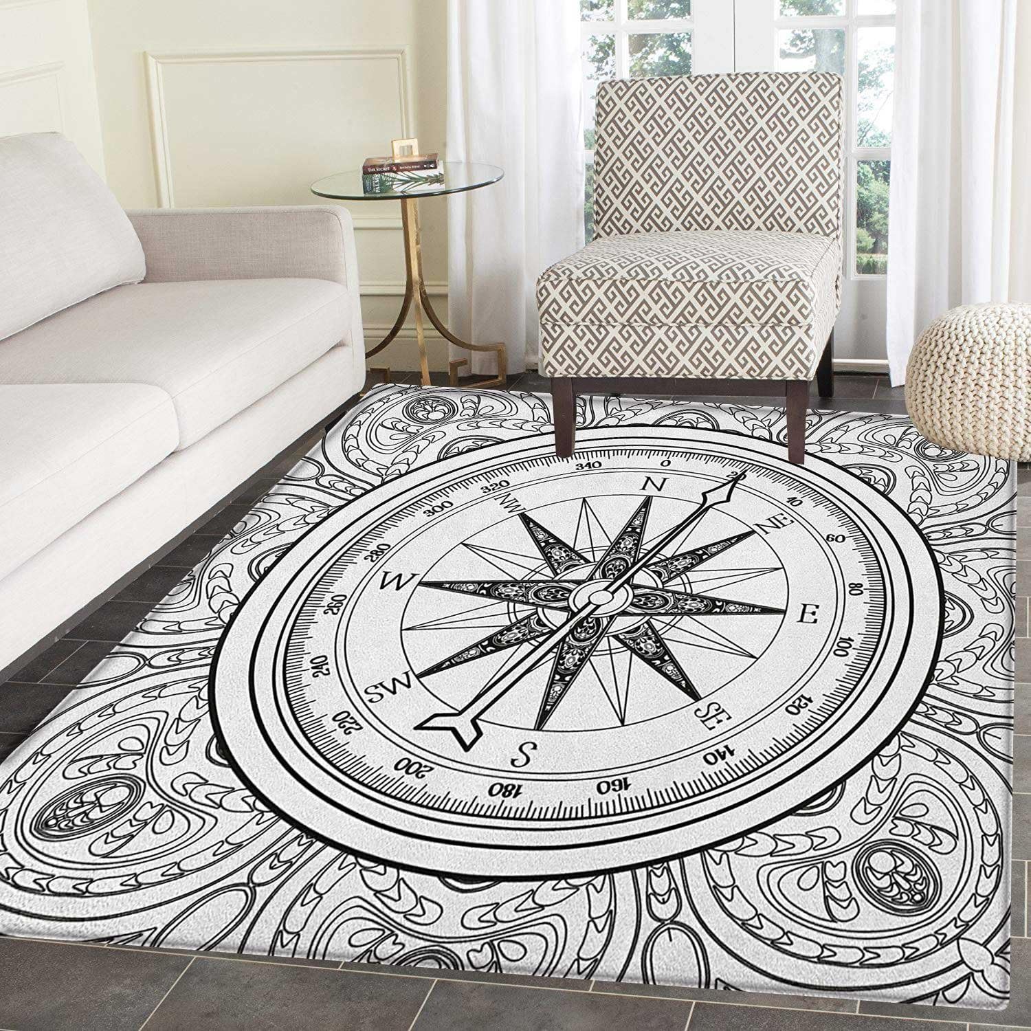 Amazon Com Compass Rugs For Bedroom Hand Drawn Windrose In Line