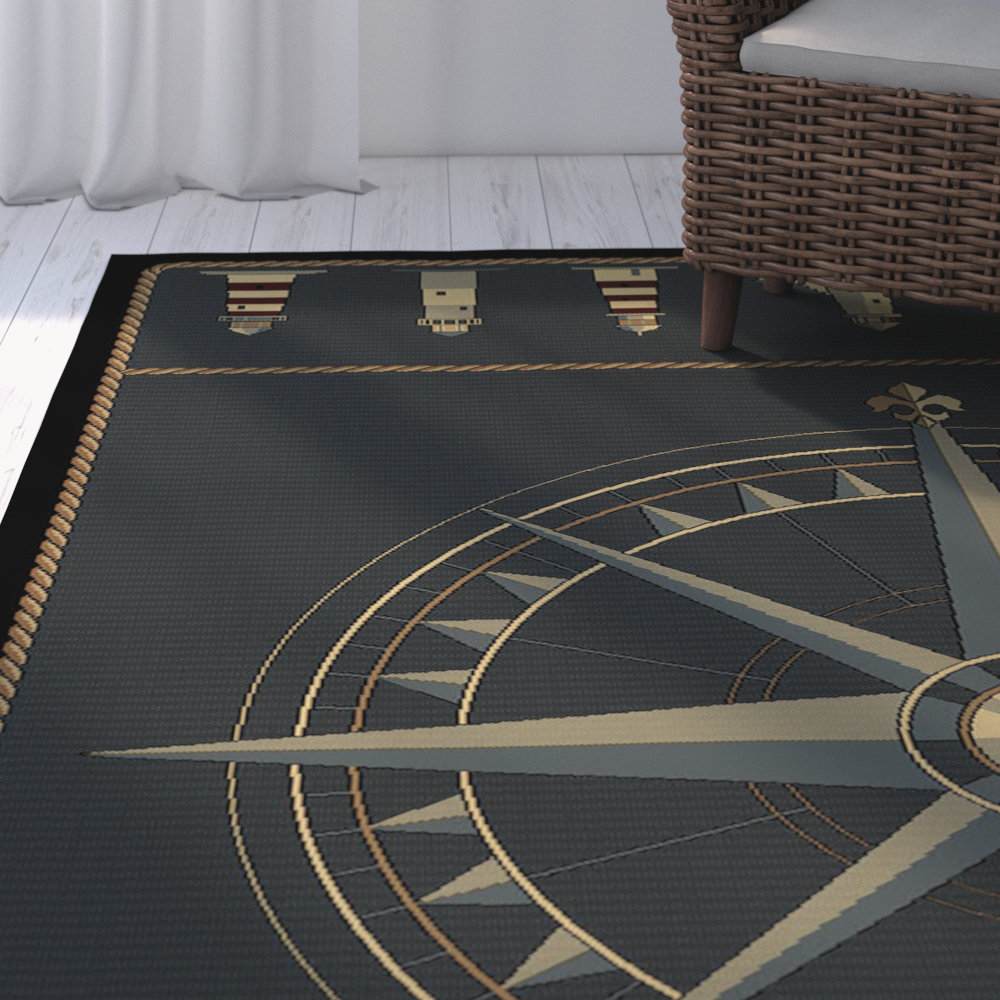 Breakwater Bay Faris Sailor S Compass Navy Area Rug Reviews