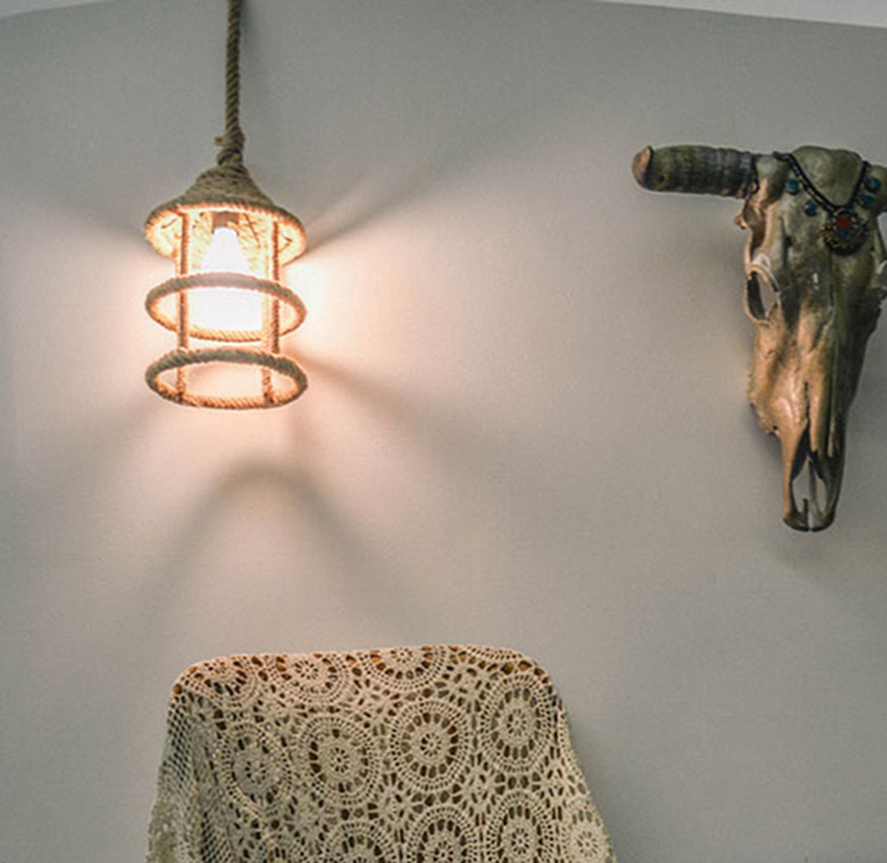 1 Pcs Rope Pendant Light Hand Wrapped In Manila Rope For Pendent