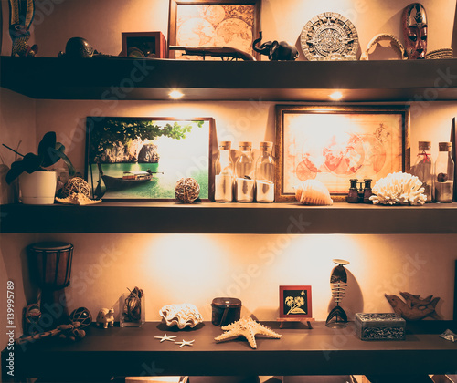Interior Vintage Style Wall Shelves With Travel Nautical