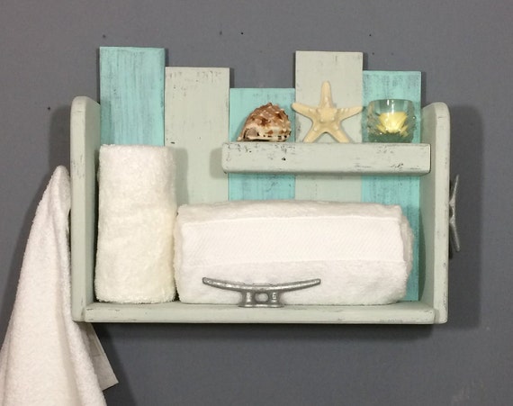 Beach Bathroom Shelf With Hooks Nautical Bathroom Wall Shelf Etsy