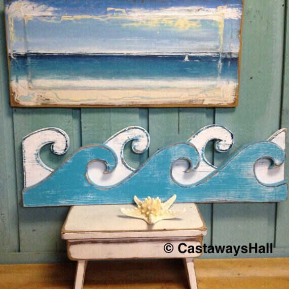 Waves Sign Wall Art Beach House Coastal Nautical Wall Shelf Etsy