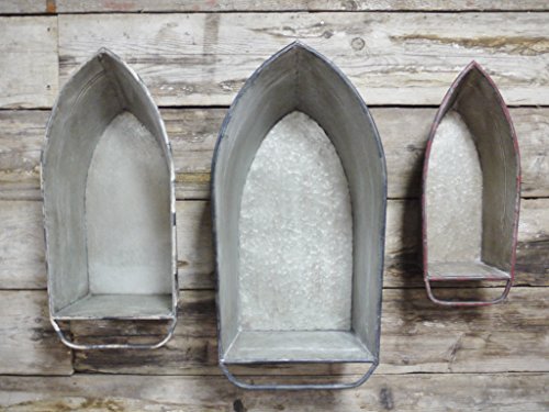 Set Of Three Retro Vintage Style Boat Shaped Metal Wall Shelves