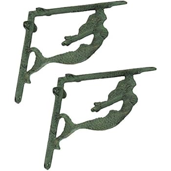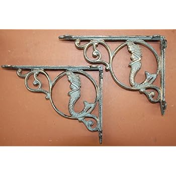 Set Of 2 Mermaid Nautical Cast Iron Wall Shelf Support Brackets