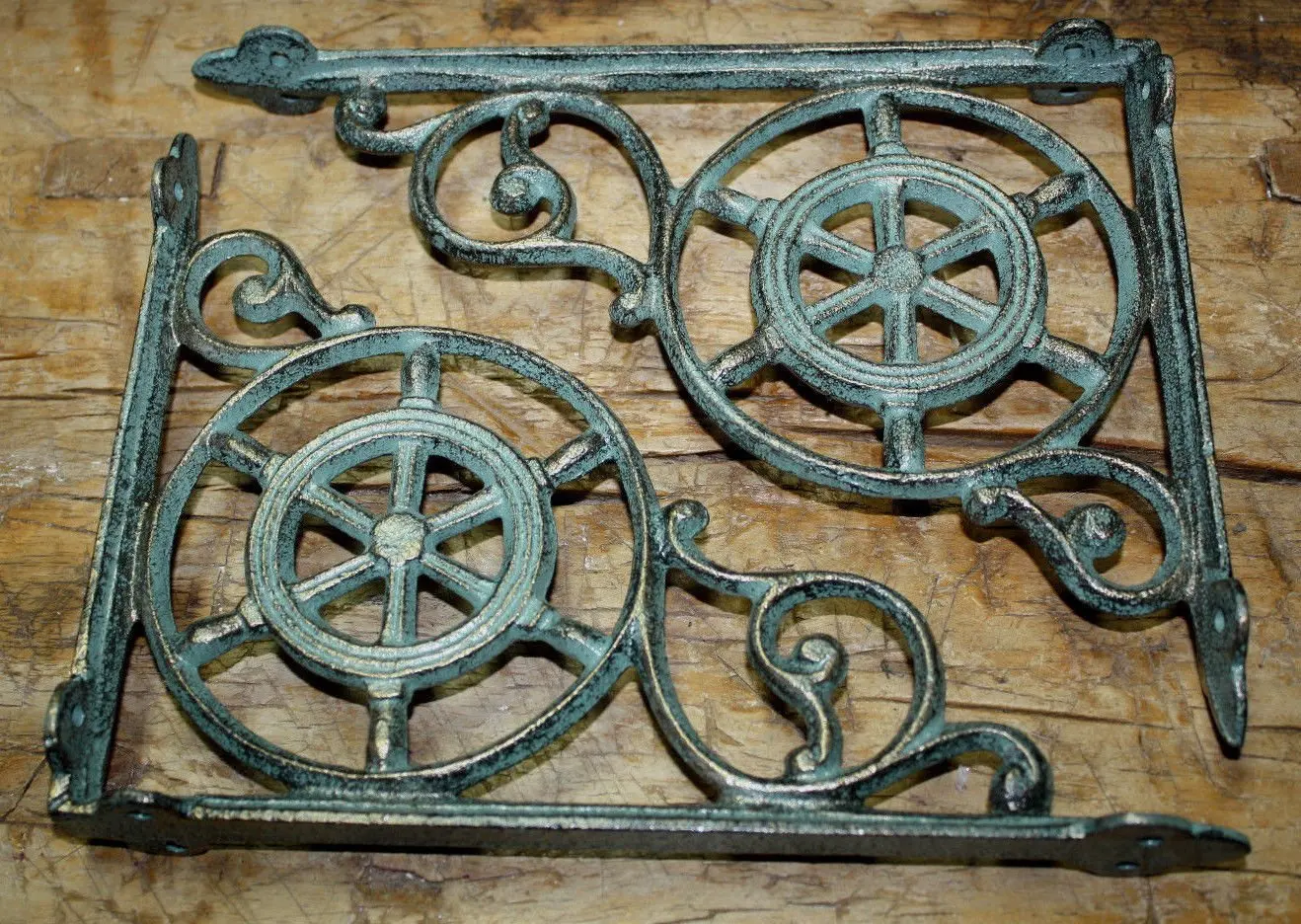 Turquoise Seahorses Cast Iron Wall Shelf Brackets Nautical Home Accent