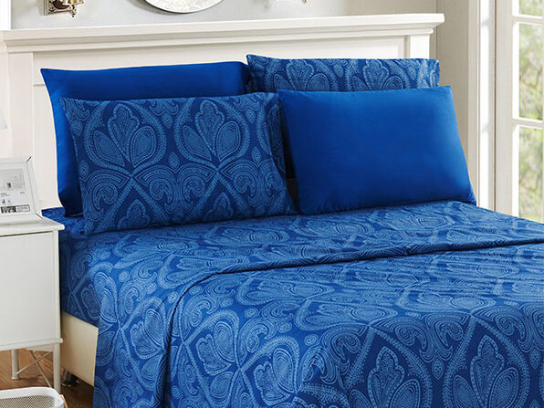 Paisley Microfiber Sheet Set Navy Queen Joyus