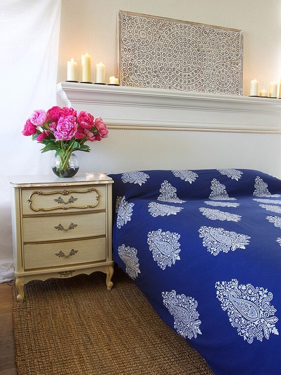Mood Indigo Modern Navy Blue White Paisley Bedspread Etsy