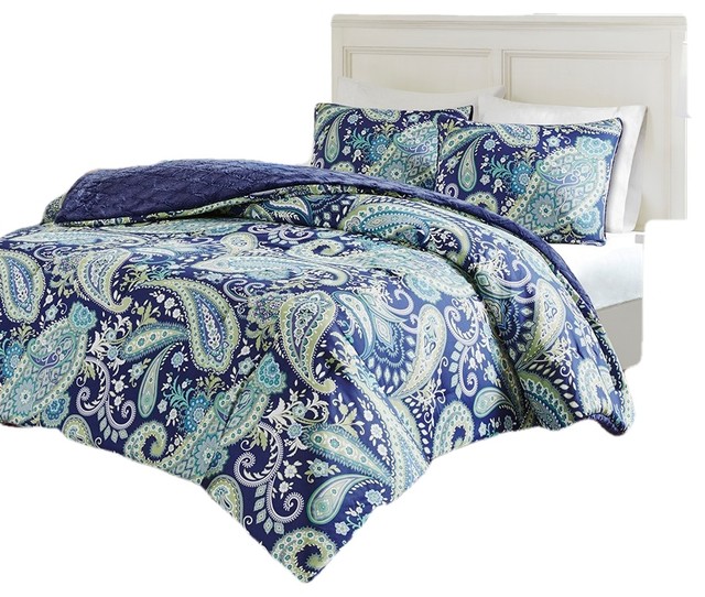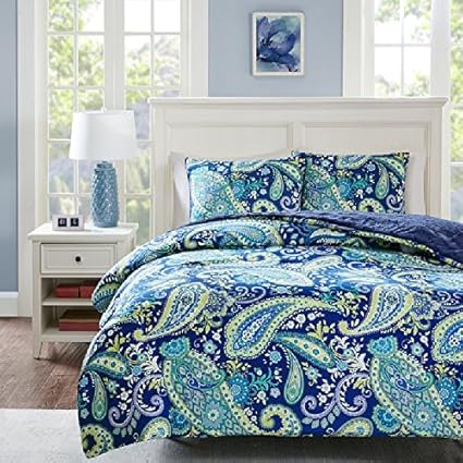 Amazon Com 3 Piece Girls Blue Paisley Themed Comforter King Set