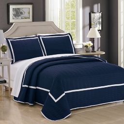 Augusta Super King Quilt Coverlet Set Navy Blue Large King