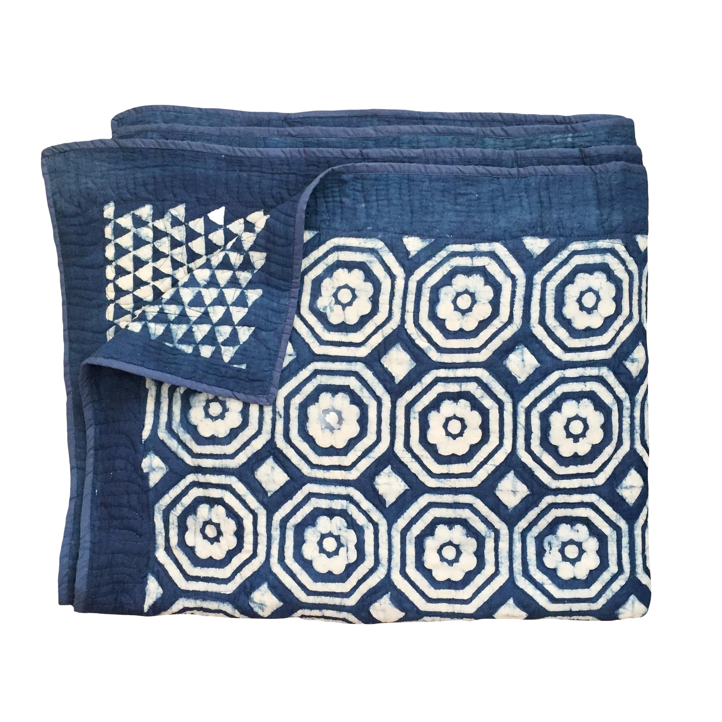 Vintage Handmade Navy Blue White Cotton Hand Quilted Patchwork