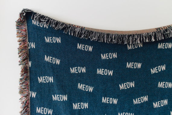 Meow Woven Throw Blanket Cute Navy Blue Throw Blanket For Etsy