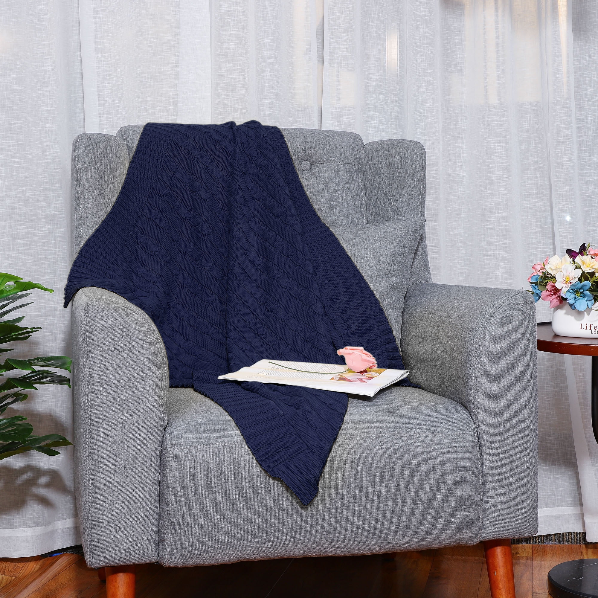 Chunky Throw Blanket 39x79inch Chunky Knit Blanket Navy Blue Throw