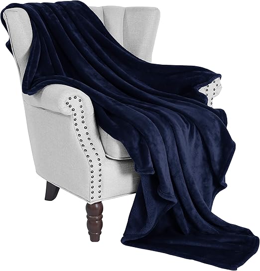Pavilia Luxury Soft Plush Navy Blue Throw Blanket For Sofa Couch