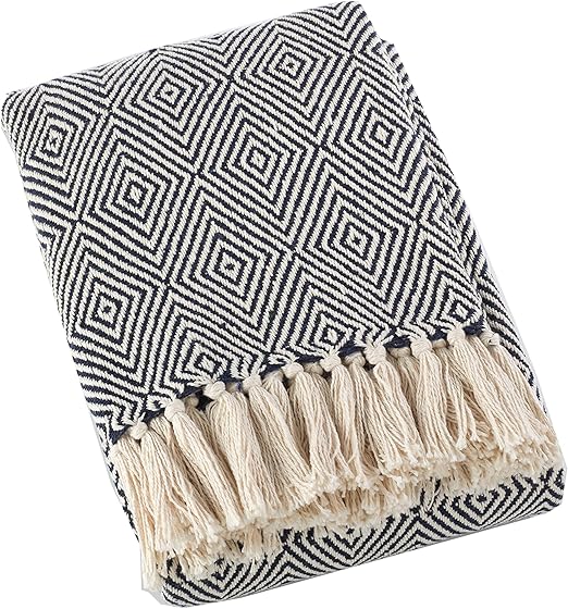 Montel Tassel Navy Blue Throw Blanket Soft And Stylish Room