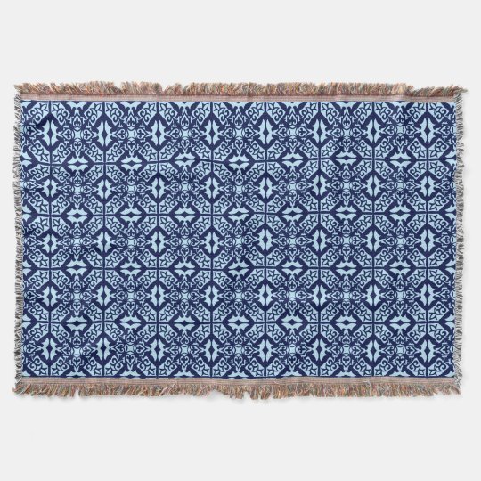 Moroccan Tile Pattern Navy And Sky Blue Throw Blanket Zazzle Co Uk