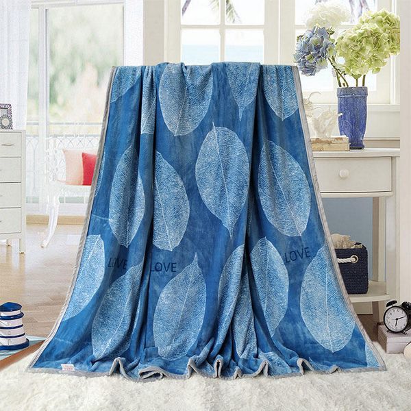 Navy Blue Leaves Flannel Blanket Solid Soft Kids Fleece Blankets