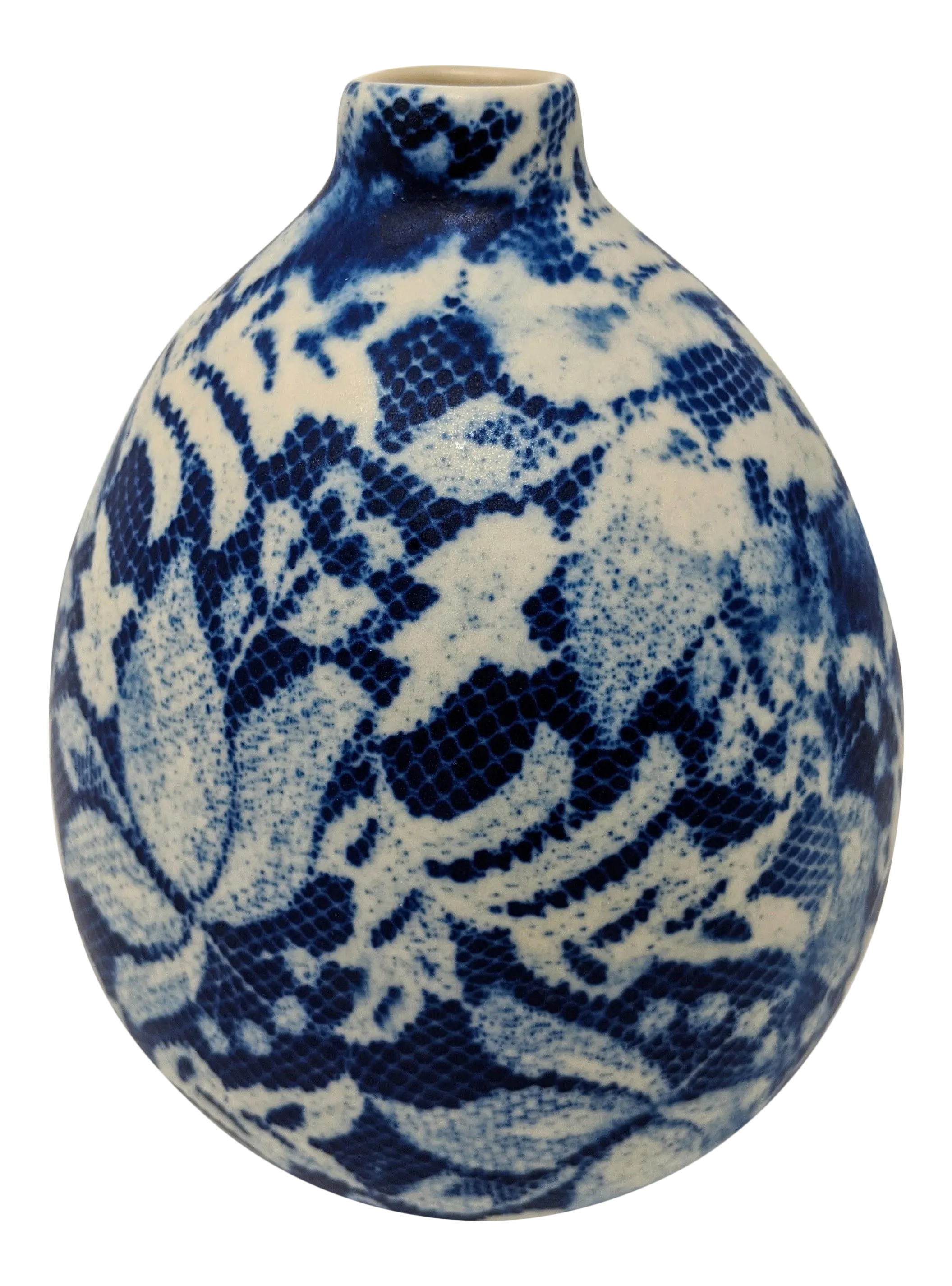 Handmade Ceramic Navy Blue White Dimensional Flower Motif Vase