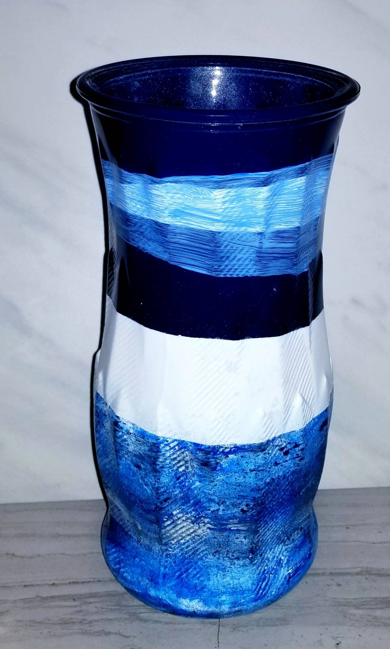 Tall Navy Blue And White Glass Vase Modern Etsy