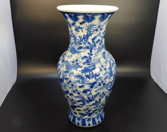 28 5 White Glaze Dark Blue Patterns Decorative Jar Shaped Floor