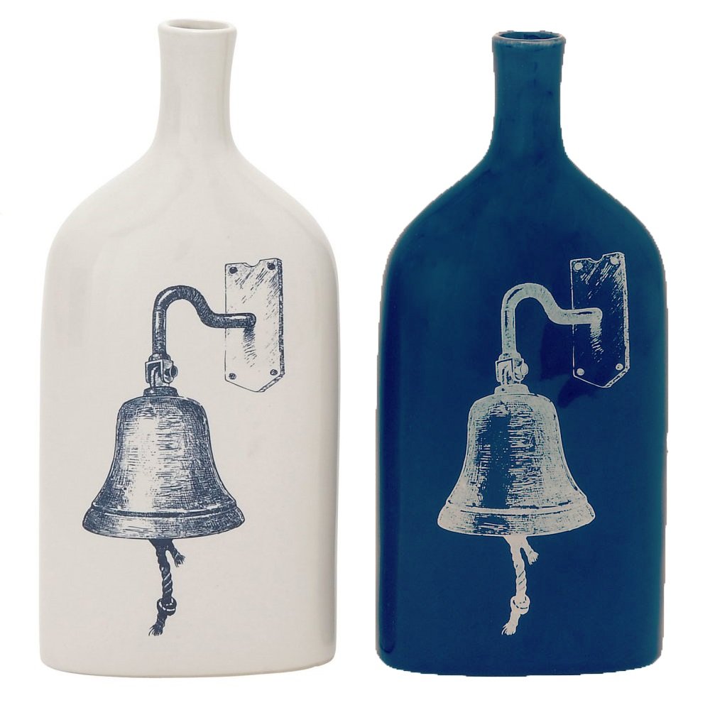 Shop Set Of 2 Navy Blue And White Cylindrical Shaped Decorative