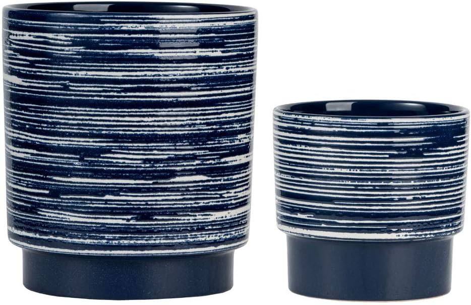 Amazon Com Stoneware Vases Navy Blue Set Of 2 Kitchen Dining