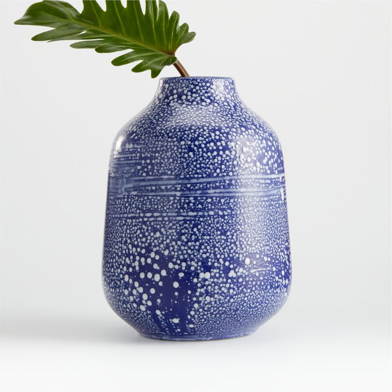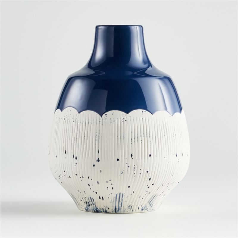 Navy Blue And White Textured Ceramic Vase Small Magi Home