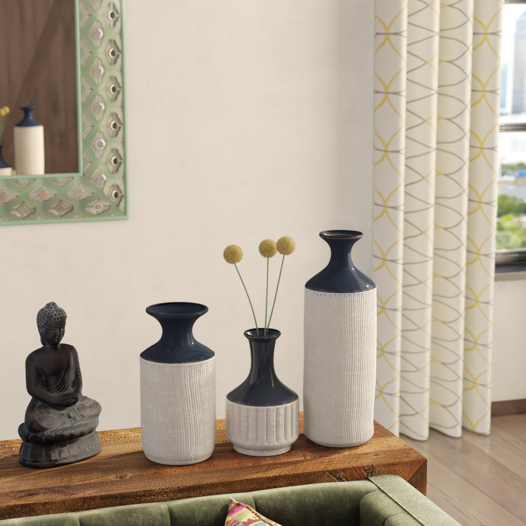 Contemporary Home Living Set Of 3 Off White And Navy Blue